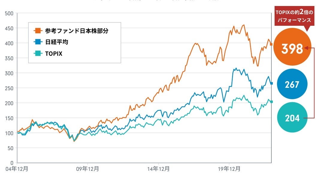 参考ファンド⽇本株部分と主要な⽇本株式指数の運⽤実績*3