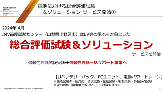 テスト&ソリューションシステム(TSS)は、祖業の振動試験をワンストップサービスにまで高めていくことを目指しています。まずは電気自動車(EV)です。山梨県上野原市の工場でEVの総合評価試験&ソリューションサービスを始めました。これにより一括でのサポートが可能になりました。ただ、EVが当初の想定通り、普及するのかどうかについて懐疑的な見方があることも承知しており、状況を見ながら追加投資が必要かどうか検討していこうと思っています。