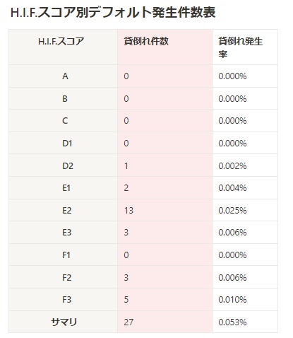本技術の活用により、業界平均デフォルト率1.08%に対し、H.I.F.は1/10の0.05%と、圧倒的に低い水準を誇ります。