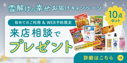 また、みなさまの家計を応援したいという想いから、ご予約の上『保険クリニック®』にご相談いただくと春にうれしい「春待ち10点セット」をプレゼントするキャンペーンに至りました。