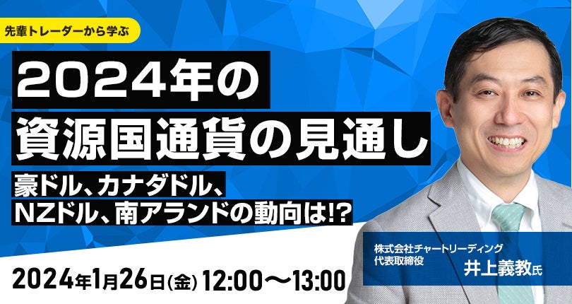 『2024年の資源国通貨の見通し 豪ドル、カナダドル、NZランドドル、南アランドの動向は!?』に、是非ご参加くださいませ!