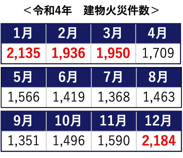 ■冬のシーズン(12月〜3月)は建物火災が増加傾向に