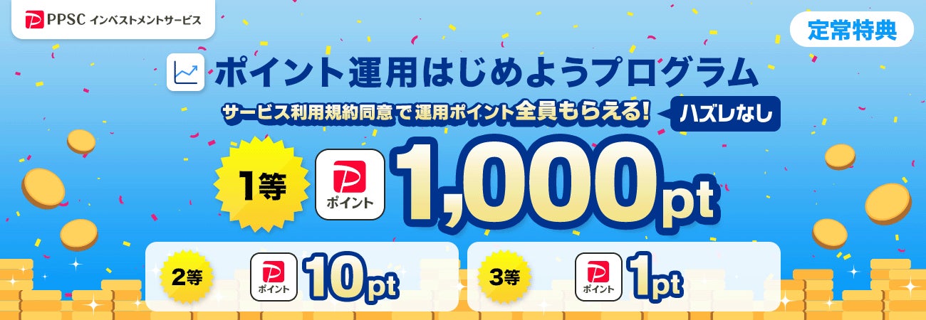 PPSCインベストメントサービスは、今後も「ポイント運用」のコース拡充など、随時サービスをアップデートしながら、資産運用をより身近に感じていただけるサービスを提供してまいります。