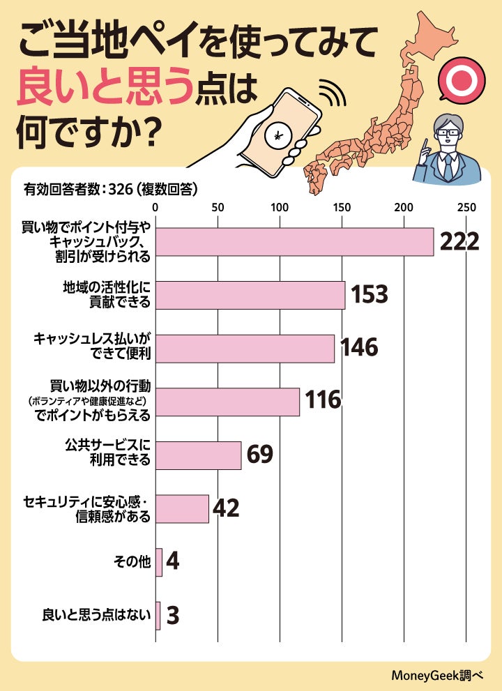 「ご当地ペイ」利用者330人へのアンケートからは、メリットやデメリットなどが明らかになりました。