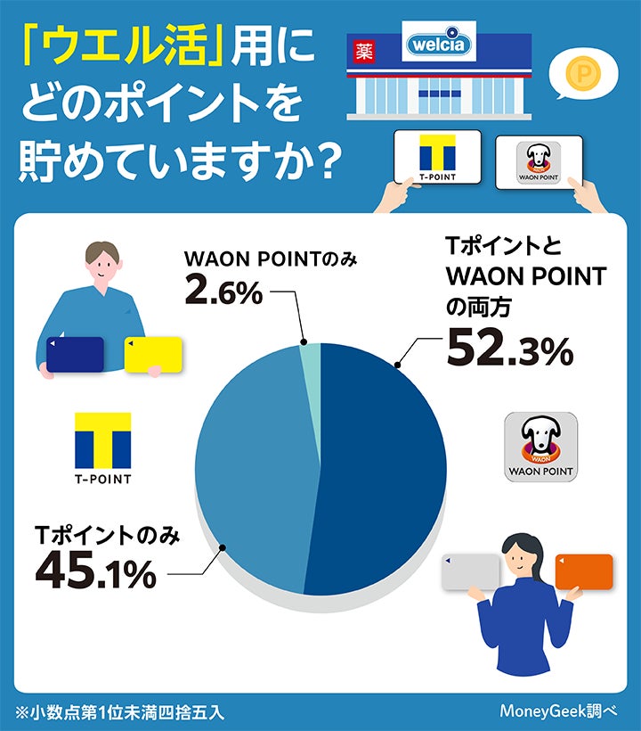 TポイントとWAON POINTの両方を貯めている人は52.3%と過半数でした。