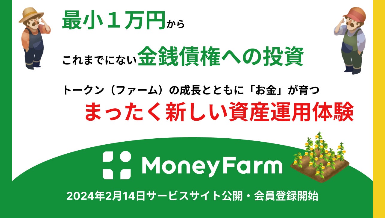 【トークン化債権による資産運用】「お金」を育てる新しい資産運用体験を提供する「Money Farm」2024年2月14日にローンチ ~トークン化債権販売の初セールは3月初旬を予定~