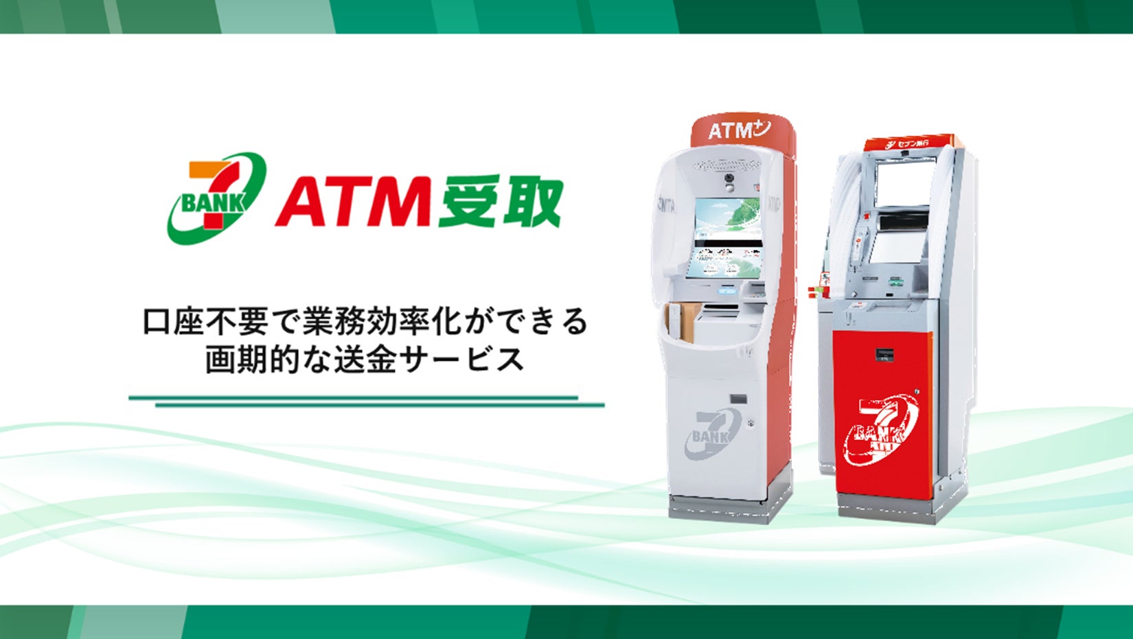 ATM受取は、企業から個人への送金を、全国のセブン銀行ATMにて、銀行口座を介さず現金または電子マネーとして受取ることができるサービスです。働き方の多様化や情報管理の厳格化、キャッシュレス化が進む中、より簡単・便利に、かつ安全にご利用いただける送金サービスとしてご提供しております。