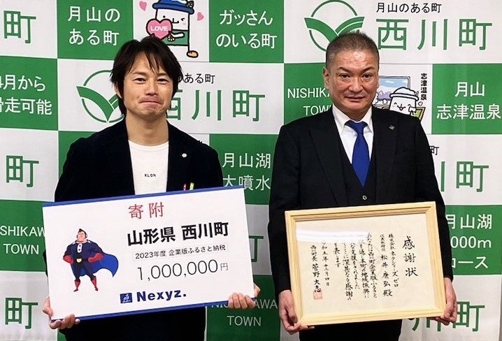 当社の子会社である株式会社NEXYZ.ファシリティーズ※は、株式会社きらやか銀行(頭取 川越 浩司 以下、きらやか銀行)を通じて、内閣総理大臣の認定を受けた地域再生計画に賛同し、山形県の8自治体に計8,000,000円および光触媒除菌脱臭機「ターンド・ケイ(1,254,000円相当)」の物納による寄附を行いました。