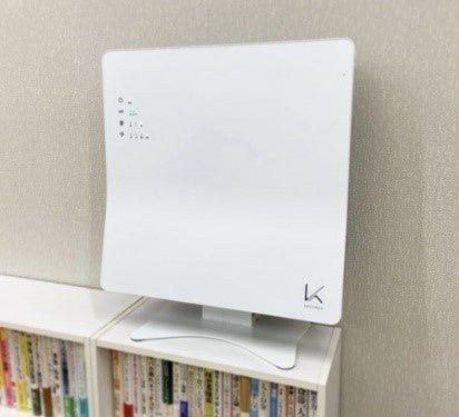 ◀物納寄付も行い、合計59台の光触媒除菌脱臭機「ターンド・ケイ」が県内の学校や幼稚園に設置されました