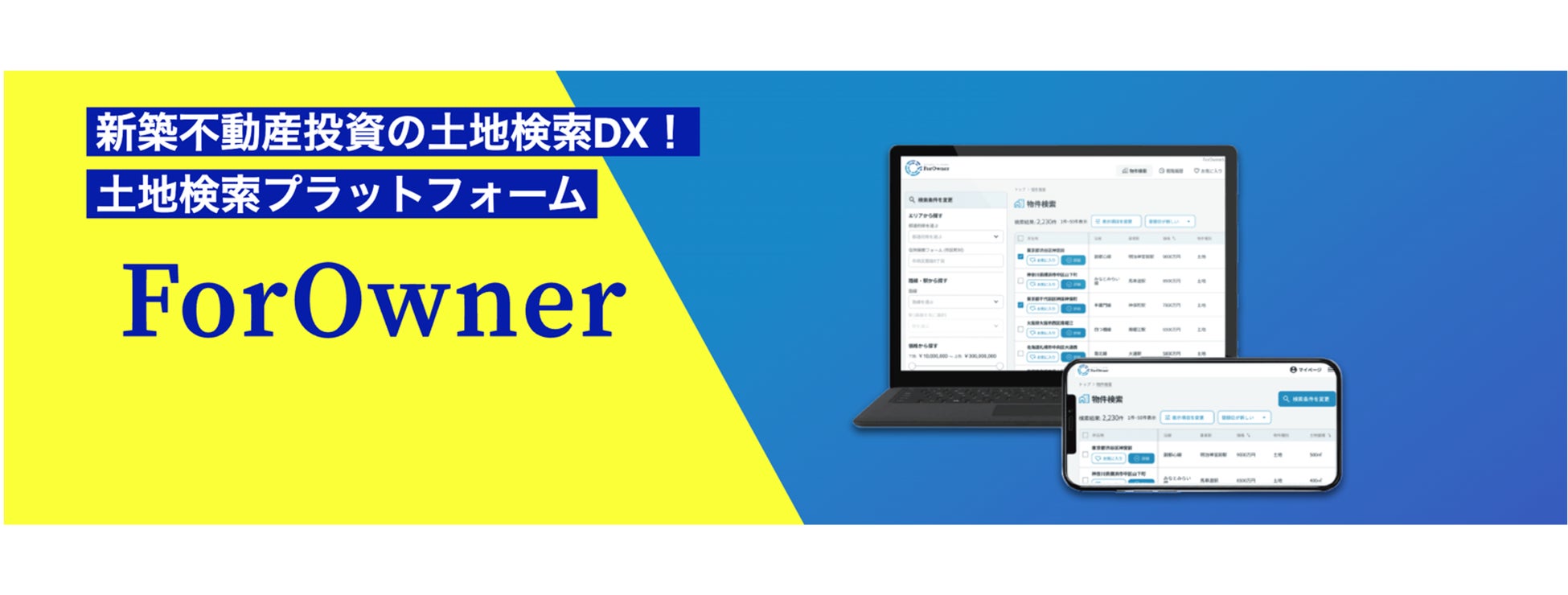 CFコンサルティング株式会社(本社:東京都中央区、代表取締役/生稲 崇)は2024年2月1日(木)より、新築不動産投資の土地検索プラットフォーム『ForOwner』の提供を開始しました。本サービスは複数のポータルサイトに掲載されている土地情報を一括で検索、表示させることができます。さらに、容積率、建蔽率、用途地域、接道など新築不動産投資の現役プレイヤーだからこそわかる投資家目線の検索条件を設定することができ、アパート用地、マンション用地など個々の開発要件に合わせて手軽に検索することが可能になる日本初のサービスです。