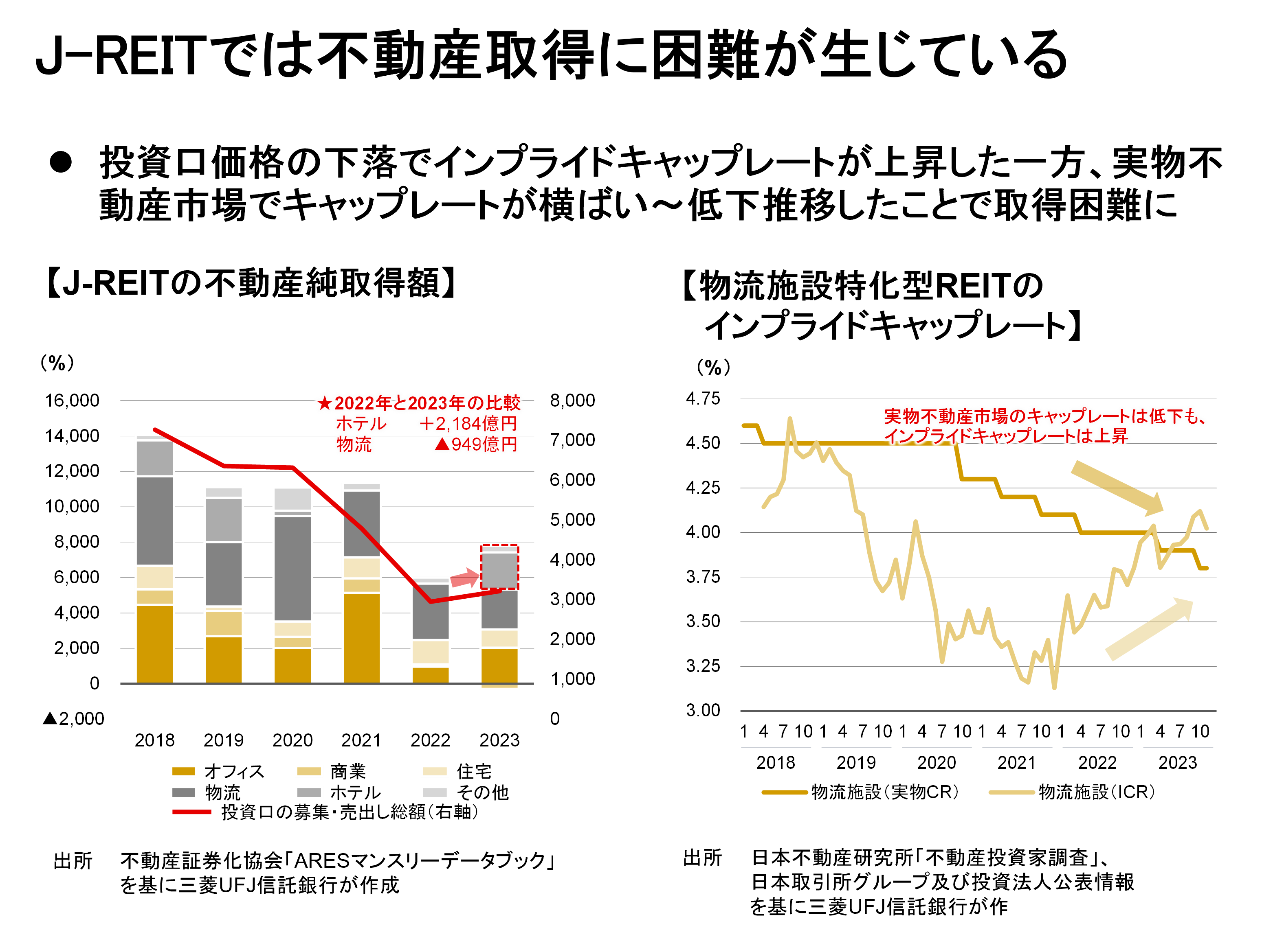投資口価格の軟調な推移によって、J-REITでは不動産取得に困難が生じている
