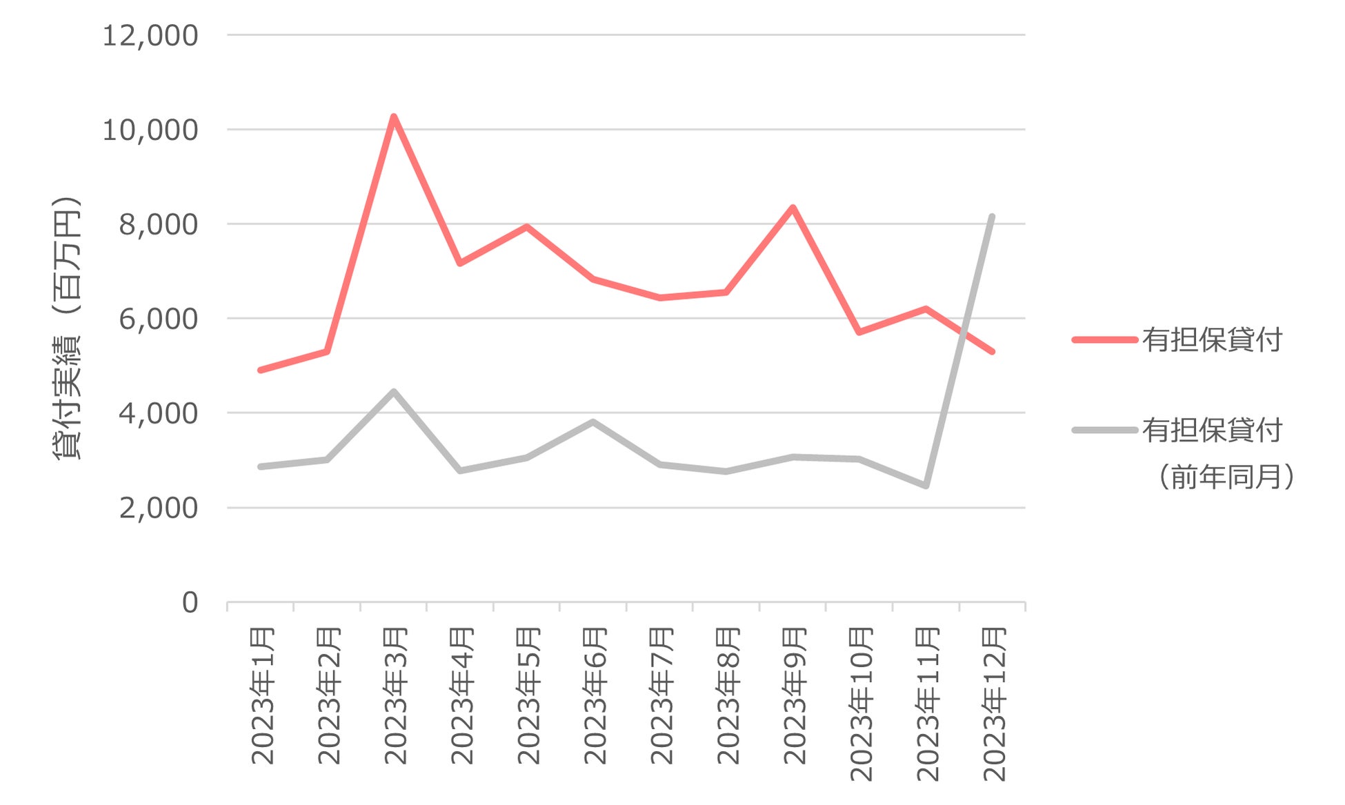 ・住宅向け貸付の月間貸付金額は、2023年11月~12月は17.7%増加。2023年も2022年と同様のトレンドをたどり、前年同月期比較でも同程度の貸付金額で着地しました。