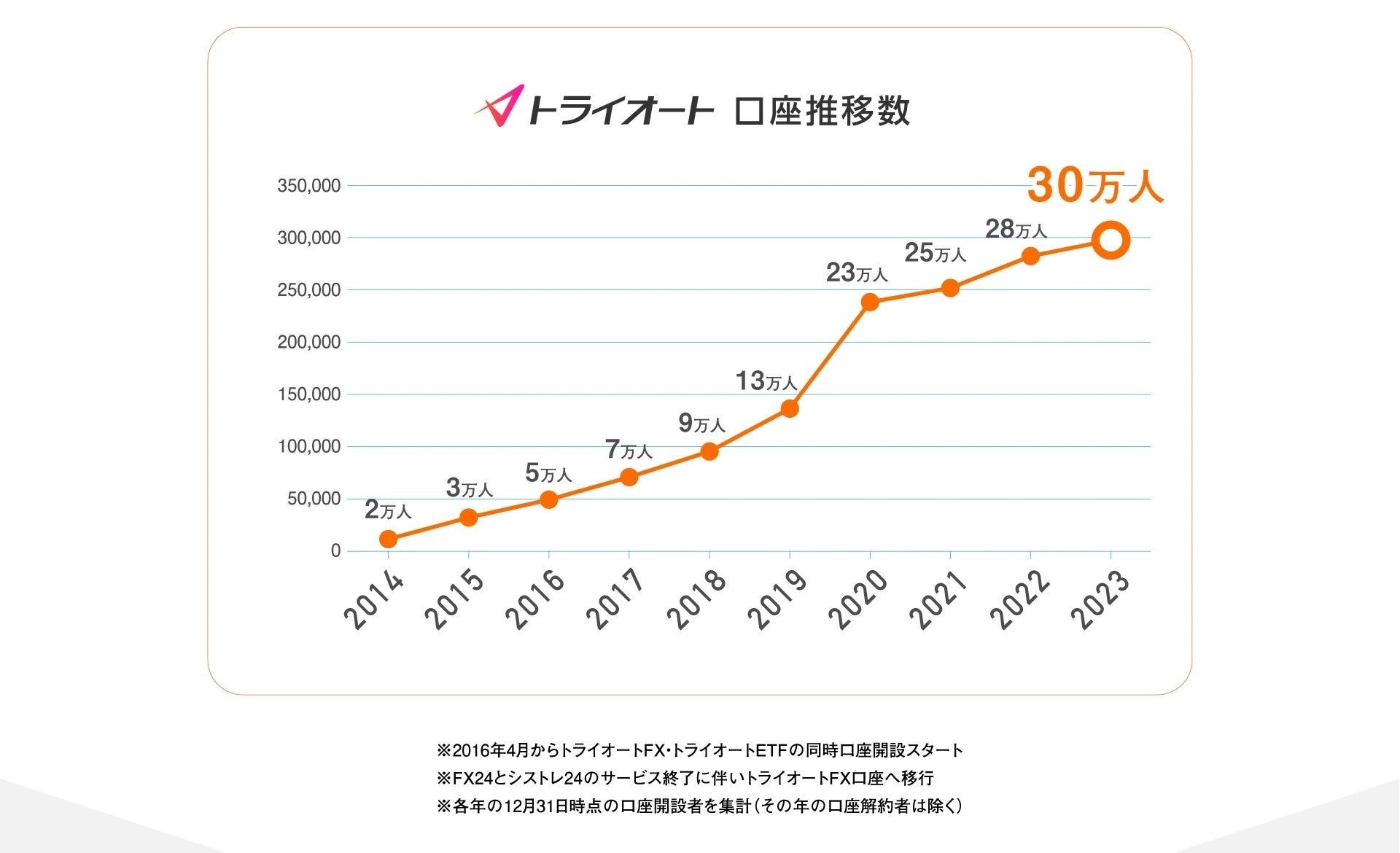 トライオートのリリースから10年で約30万人のユーザーの方にご利用いただいております。