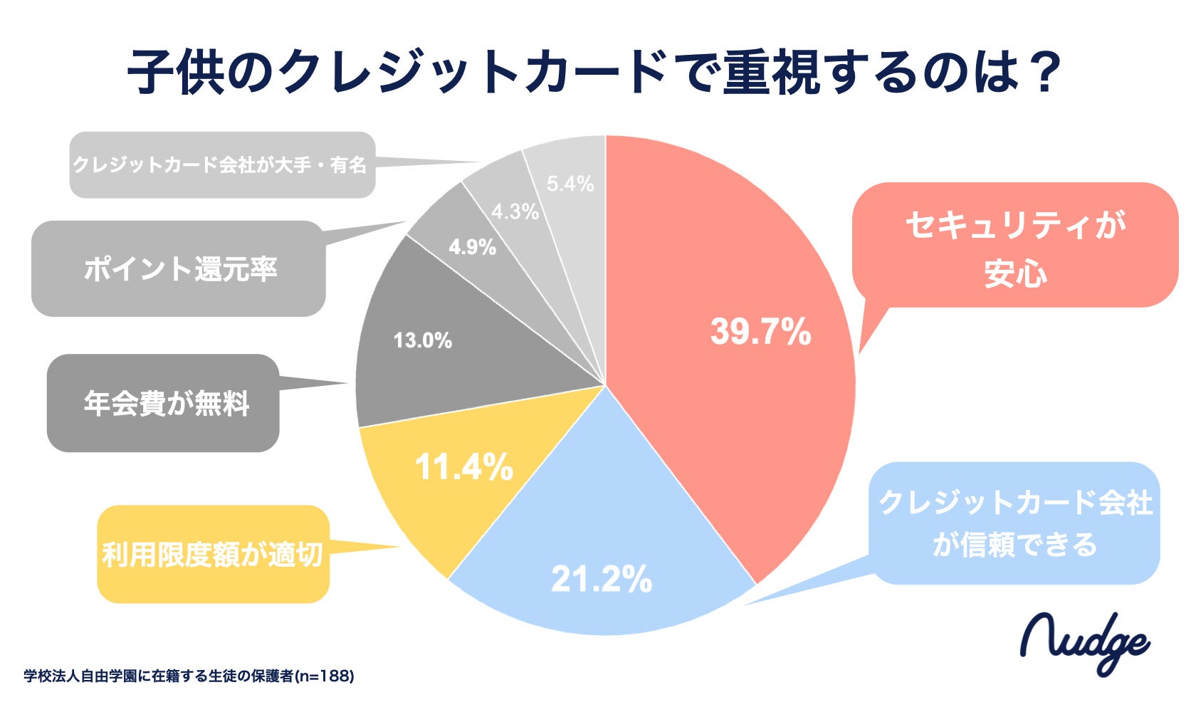今回の調査は、「飛び級社会人」プログラムの一環で、ナッジでインターンを行う高校生が、自分たちの学校の保護者に対して、子供に持たせるクレジットカードに関しての意識や知識を調査することを目的として行い、188人の保護者が回答しました。