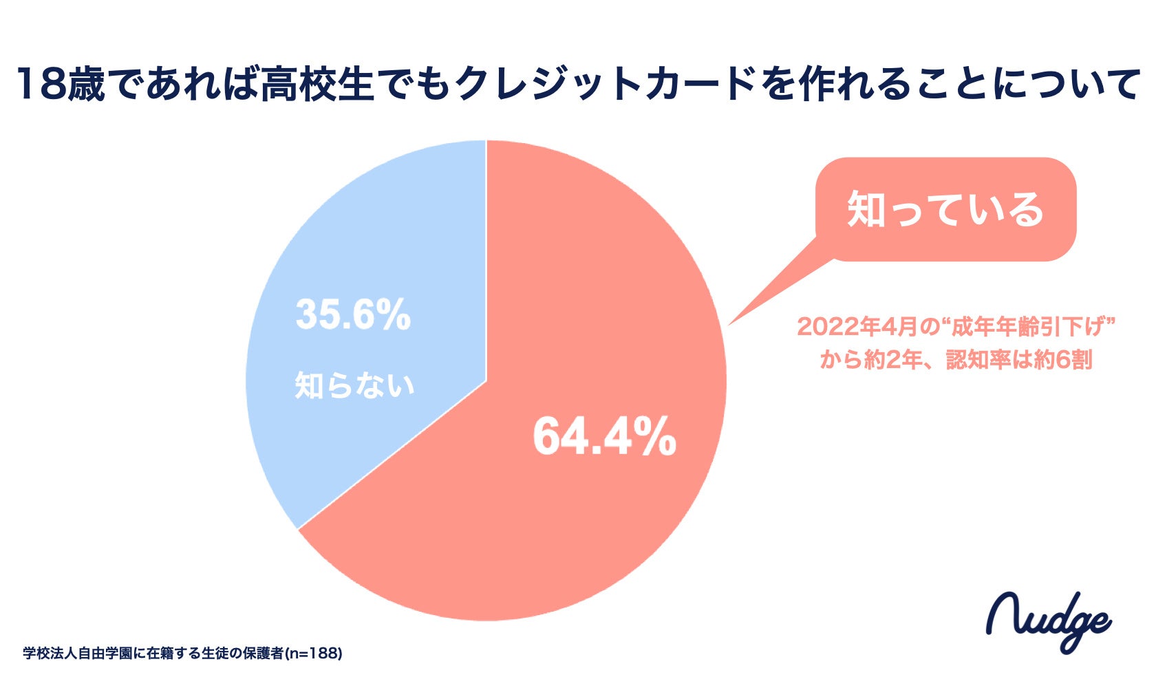 日本におけるチャレンジャーバンクを目指すナッジ株式会社(本社:東京都千代田区、代表取締役:沖田 貴史、以下「ナッジ」)は、学校法人自由学園(本部:東京都東久留米市、以下「自由学園」)の独自教育プログラム「飛び級社会人」に参加する高校生が、同校生徒の保護者を対象に「子供のクレジットカードに関する意識調査」を実施したことをお知らせします。