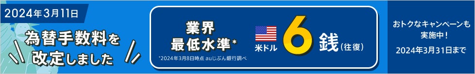 為替手数料の改定内容やキャンペーン/プログラムの詳細は、下記auじぶん銀行のウェブサイトをご参照ください。