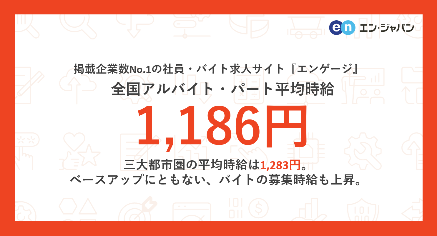 2月度の三大都市圏平均アルバイト・パート時給は1,283円(前年同月比+46円/3.7%増、前月比-11円/0.9%減)。全国平均時給は1,186円(前年同月比+62円/5.5%増、前月比-8円/0.7%減)で、いずれも前年同月比を上回りました。