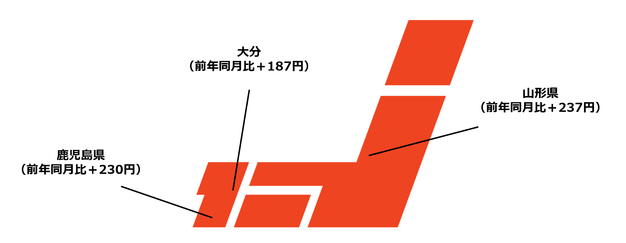 全国・前年同月比 時給上昇額TOP3(2024年2月度)