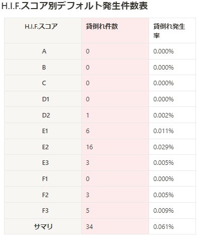 本技術の活用により、業界平均デフォルト率1.08%に対し、H.I.F.は1/21の0.05%と、圧倒的に低い水準を誇ります。