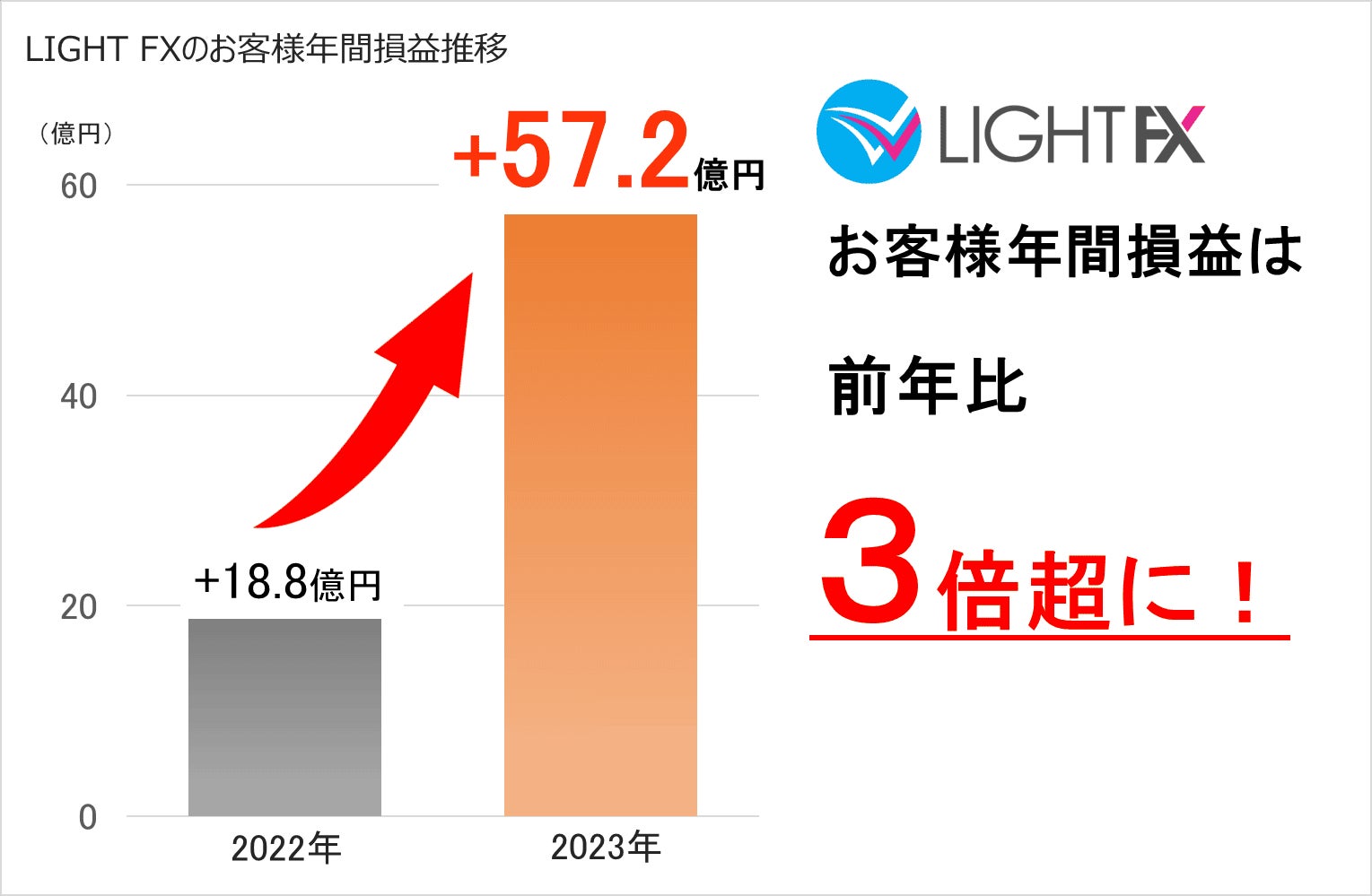 【トレイダーズ証券】LIGHT FXのお客様年間損益はプラス57億円以上!(2023年1月~2023年12月)