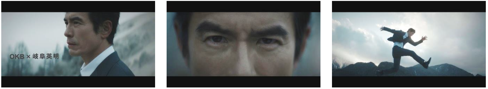 伊藤英明さんが決意を込めた表情で明日を見つめる姿を印象的に描いています。“地域を盛り上げるために挑み続ける”というOKBと岐阜英明プロジェクトに共通する想いを表現しました。