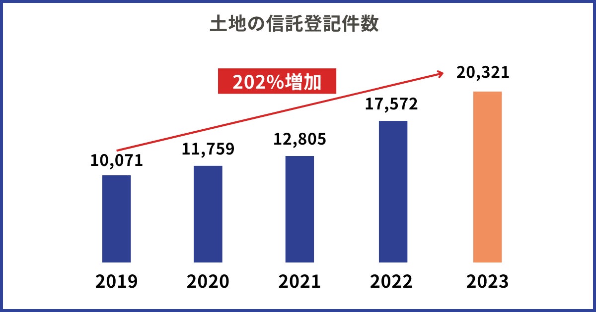2023年の土地信託登記件数は20,321件と、昨年比116%の増加となった。
