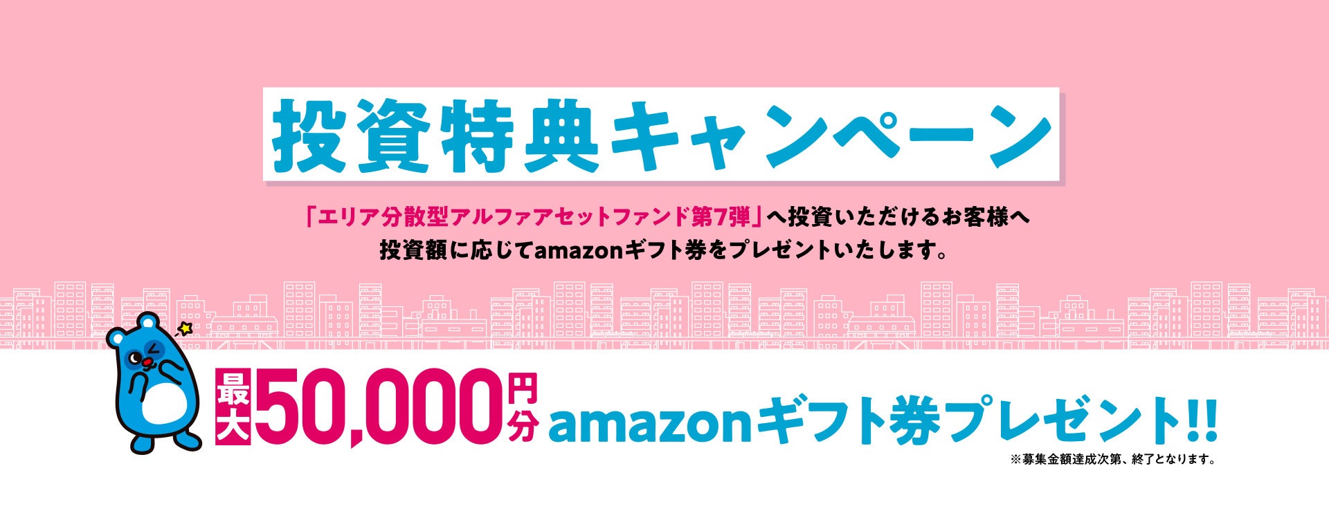 本ファンド投資額に応じて、最大50,000円分のAmazonギフト券をプレゼントいたします。詳しくは公式サイトをご覧ください。