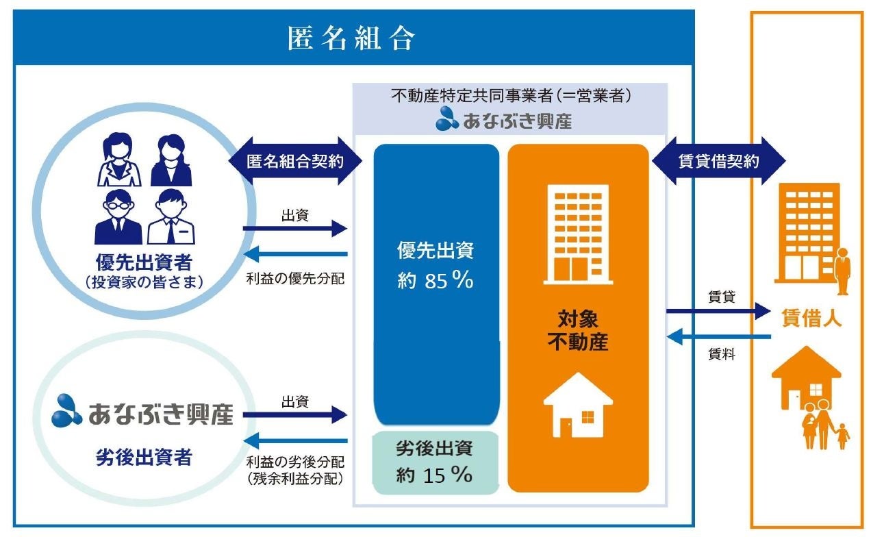 1口10万円から各地の不動産への投資が可能となっており、優先劣後出資システムを採用することで投資家の毀損リスクも低い不動産投資です。今回は劣後出資割合を15%に設定しておりますので、弊社従来のファンドよりもより安全性を高めた商品となります。