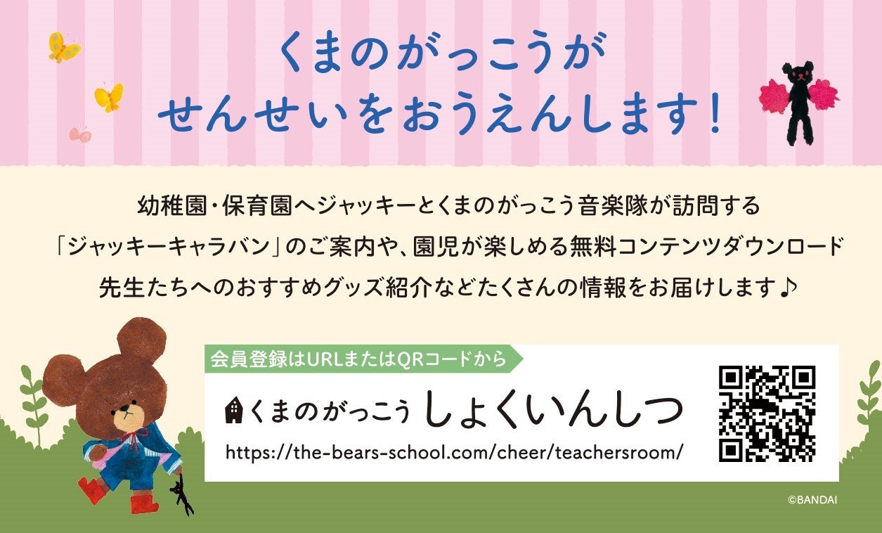 幼稚園・保育園の先生のための情報サイト「くまのがっこう しょくいんしつ」にて配布して頂ける園を募集予定です。
