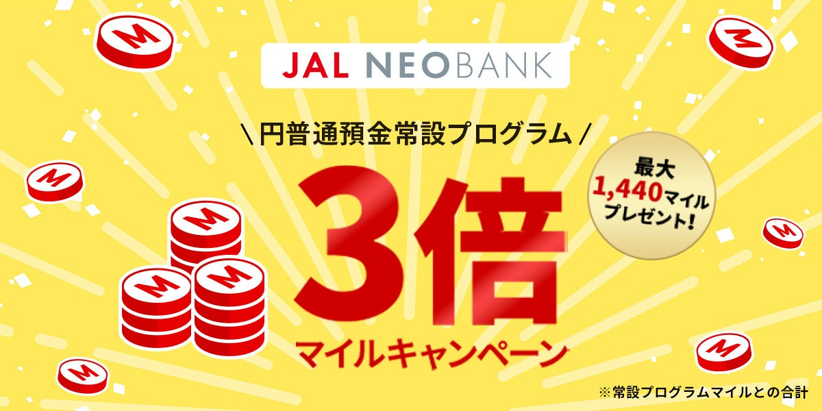 JAL NEOBANK 、「円普通預金常設プログラム3倍マイルキャンペーン」を実施