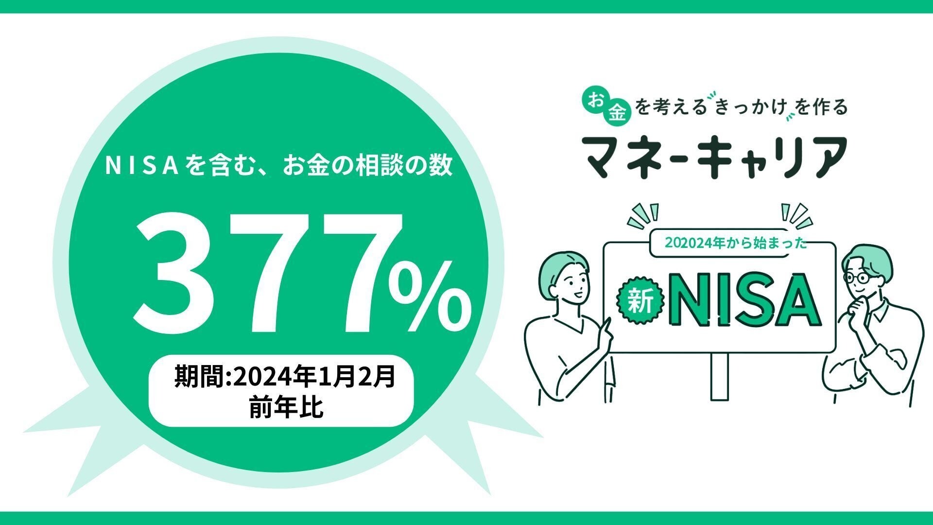 2024年に入り、NISAを含む様々なお金の相談が増えており、昨年同時期に比べ、NISA含むお金の相談件数は前年比)377%増加しております。