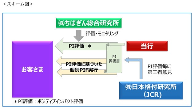 当行が実施するポジティブインパクト評価は、当行とグループ会社である株式会社ちばぎん総合研究所が共同して行い、事業者さまのKPI(目標)設定やその進捗管理を支援します。また、当行と株式会社ちばぎん総合研究所が共同して実施した評価について、株式会社日本格付研究所より第三者意見※1を取得することで客観性を担保します。