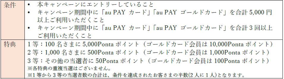 スfor auご利用額の合計最大3%、au PAY マーケットでのお買い物で合計最大9%のPontaポイント還元など