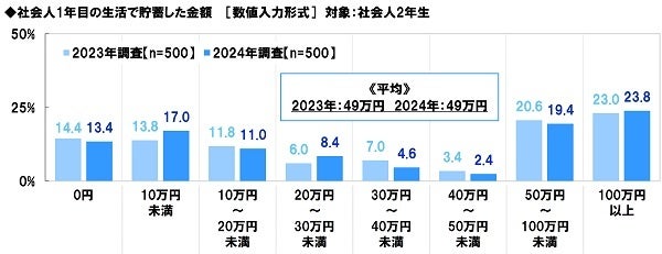 ・社会人1年目に貯蓄した金額 平均49万円