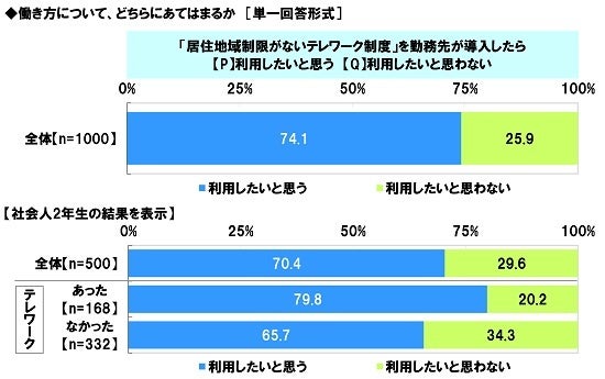 ◆「居住地域制限がないテレワーク制度を利用したい」社会人1年生・2年生の7割半
