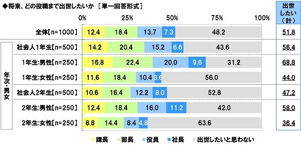 ・「出世したいと思わない」社会人1年生44%、社会人2年生53%