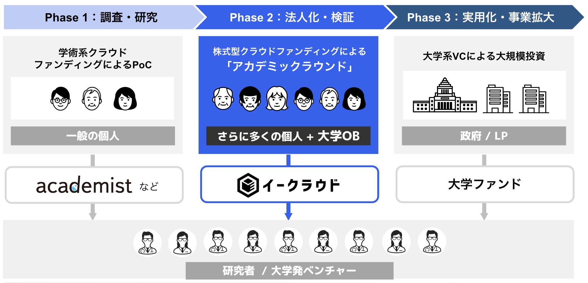 株式投資型クラウドファンディング「イークラウド」を運営するイークラウド株式会社(本社:東京都中央区、代表取締役:波多江 直彦)は、大学発ベンチャー創出を加速させる株式投資型クラウドファンディング「アカデミックラウンド」の提供を開始します。