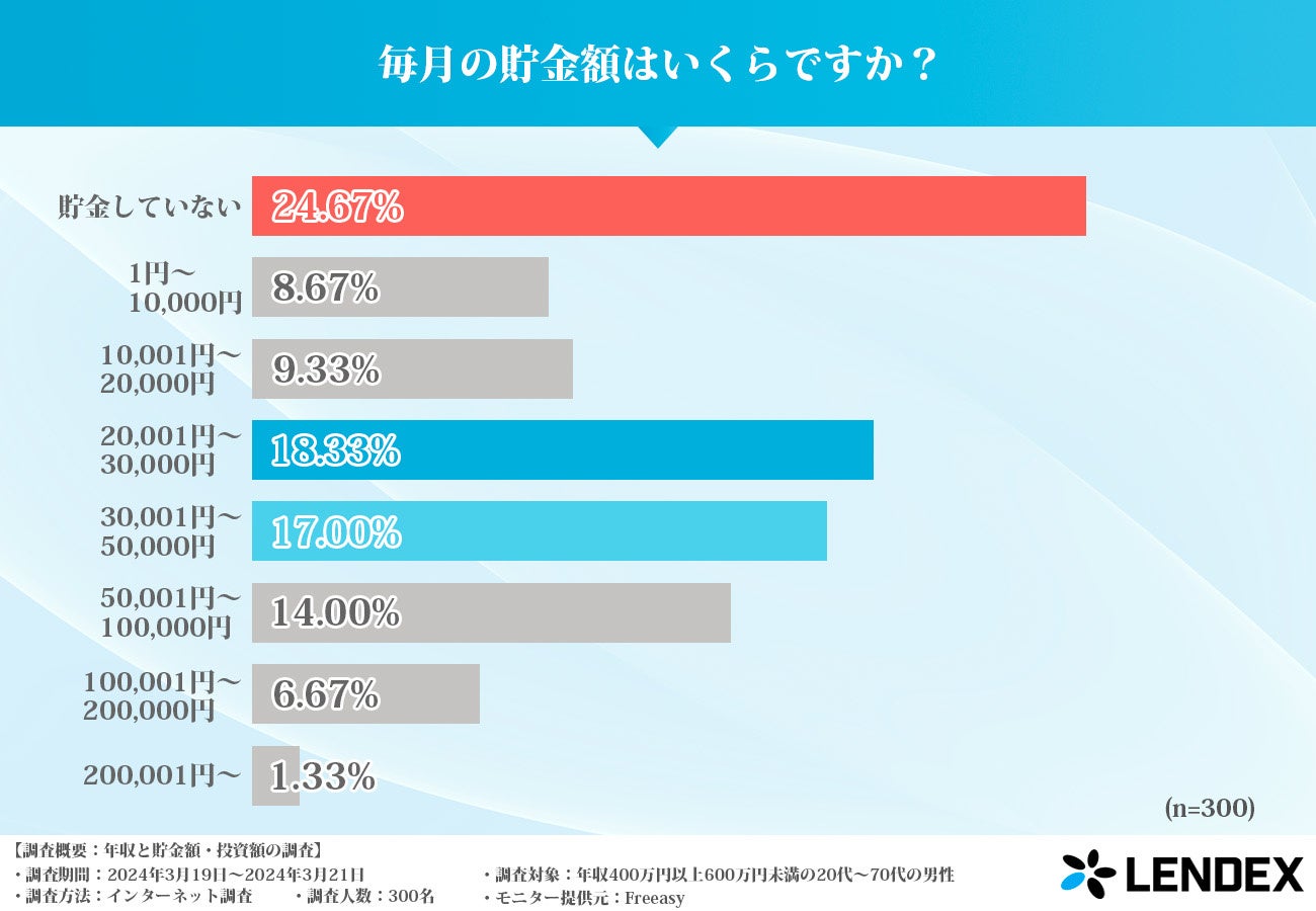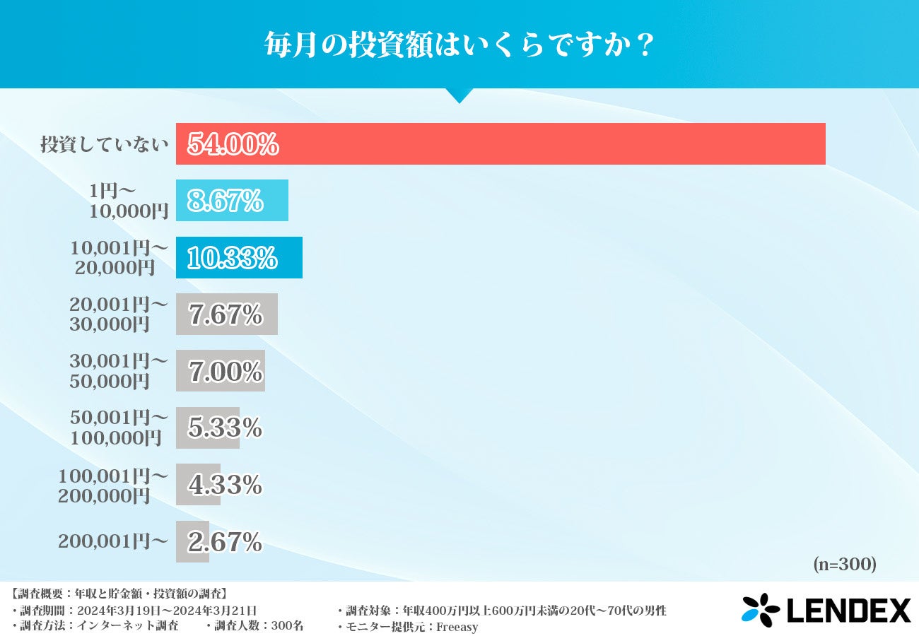 今回、ソーシャルレンディングサービスを提供する株式会社LENDEXは(https://lendex.jp/)年収が400万円以上600万円未満の20代~70代男性を対象に、「貯金額・投資額」についての調査を実施しました。