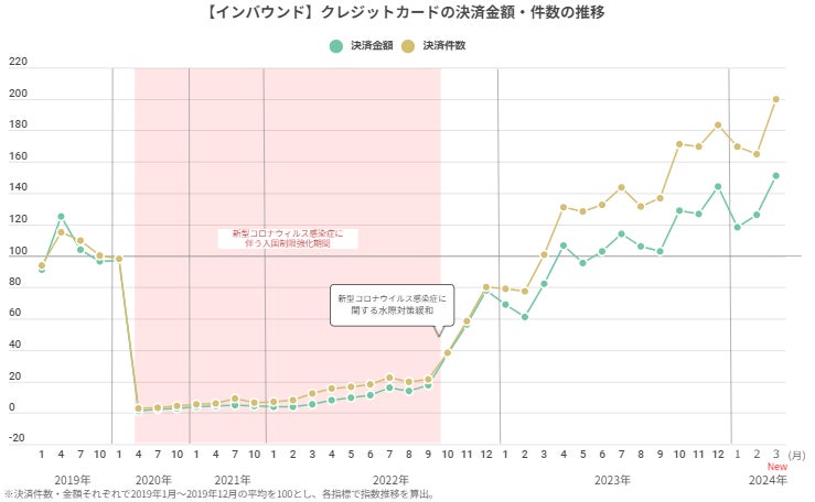 インバウンド消費の金額・件数の推移を俯瞰したコンテンツを追加しました。インバウンド消費回復傾向全体感を、時系列を追ってご確認いただけます。