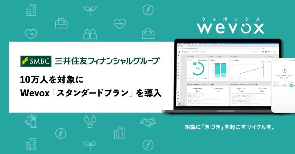 People Tech (テクノロジーによって人の可能性を拡げる) 事業を展開する株式会社アトラエ(代表取締役CEO:新居佳英)は、組織力向上プラットフォーム「Wevox(ウィボックス)」のスタンダードプラン(※)を株式会社三井住友フィナンシャルグループ(執行役社長グループCEO:中島 達、以下グループを総称して「SMBCグループ」)が全従業員約10万人を対象に導入することをお知らせいたします。