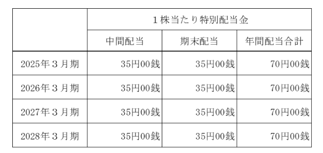 2025年3月期中間配当より、普通配当に加え下記の特別配当を実施する予定です。