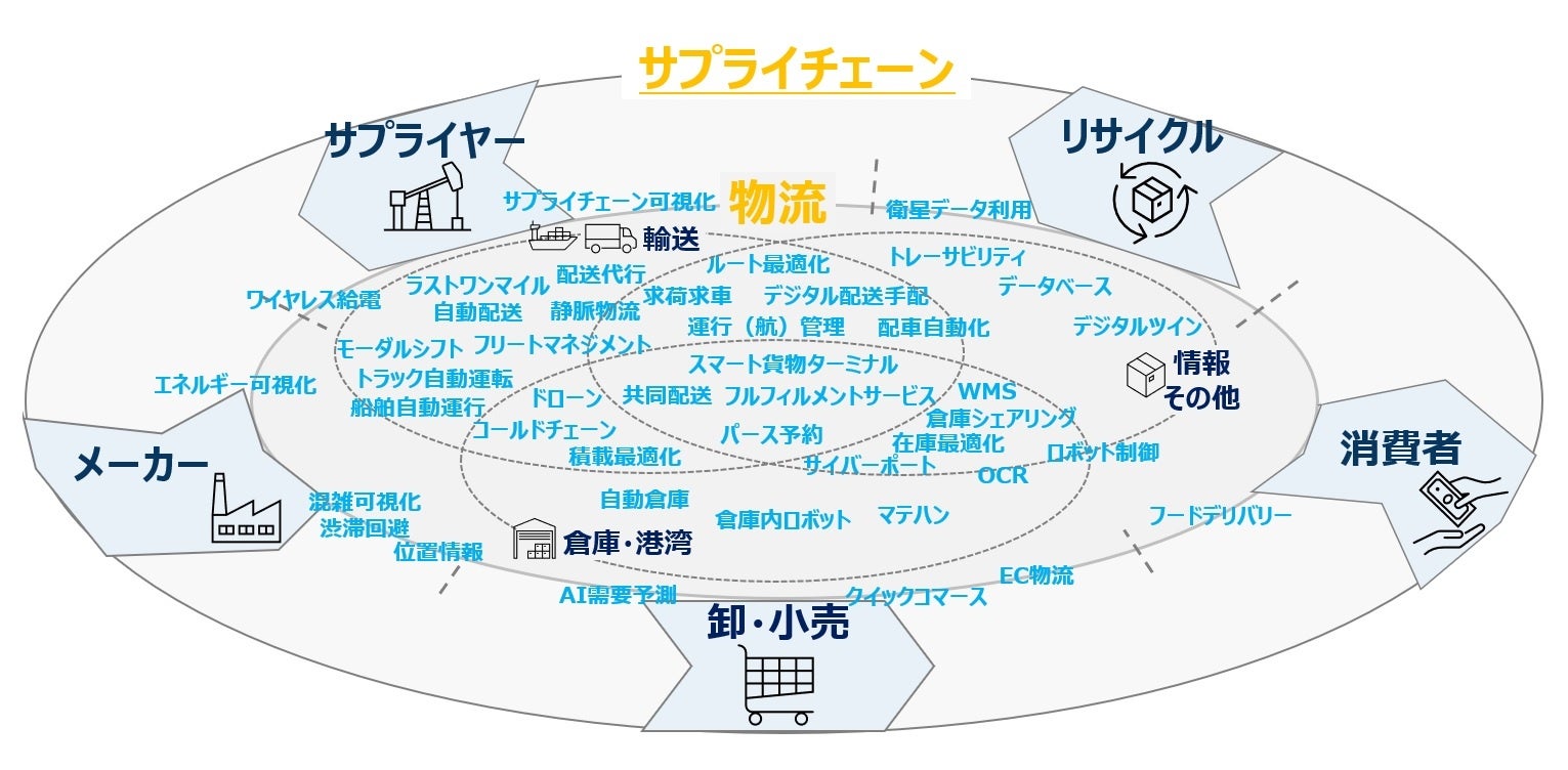 ※図に記載のものに限らず、現時点においては物流・サプライチェーン領域に直接関わらないものの、将来において当該領域への展開・応用が期待できるテクノロジー・ビジネスモデル等も幅広く対象とします。