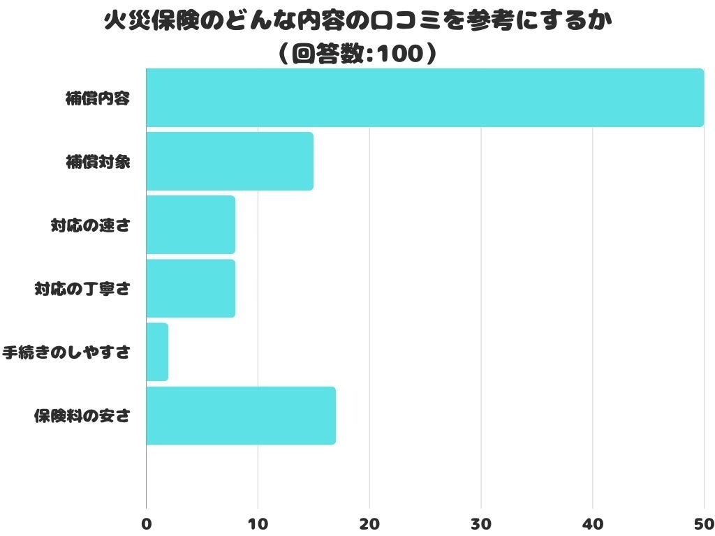 火災保険のどんな内容の口コミを参考にするかをアンケートにて調査したところ、1位は「補償内容」でした。