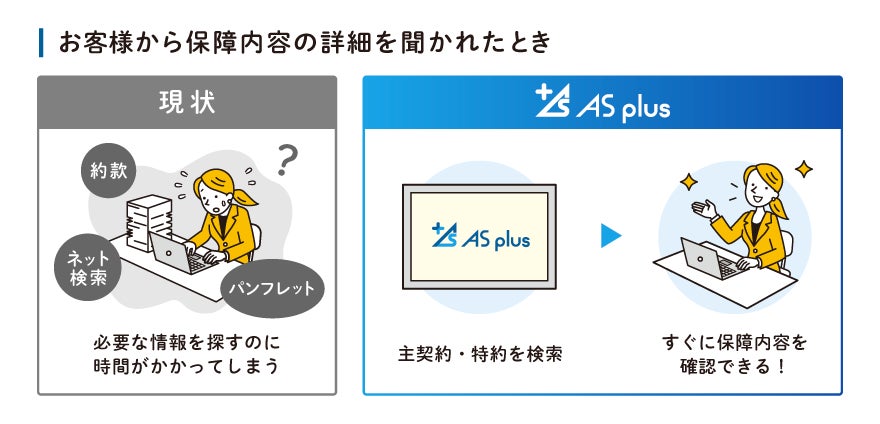 多くのASシリーズユーザー様も課題と認識されていて、かねてより「短時間で保障内容を調べられる機能がほしい」というご要望を多数いただいていたため、この度「AS-plus」の開発・リリースに至りました。