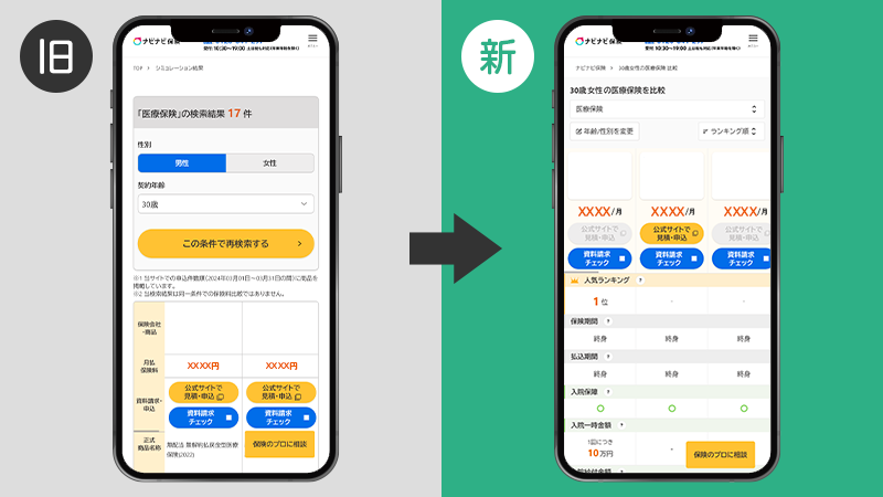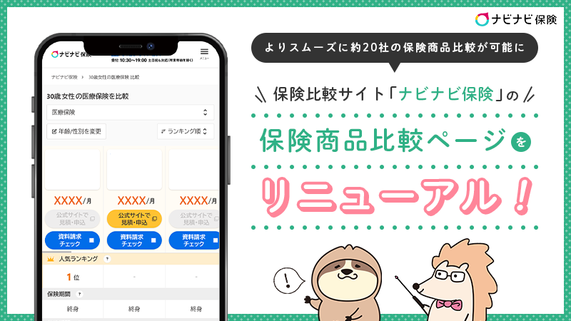 ナビナビ保険では、お客さまがいつでもどこでもスムーズに保険を選べるよう、比較機能ページのリニューアルに至りました。