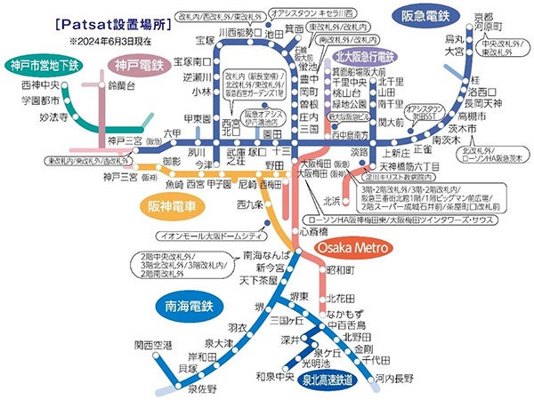 ステーションネットワーク関西は、これまで、「PatSat」を通じたATMサービスを、阪急電鉄や阪神電気鉄道、北大阪急行電鉄、神戸電鉄、南海電気鉄道、泉北高速鉄道、Osaka Metro、神戸市営地下鉄の主要駅構内にて展開してきました。今回の設置により、ATMネットワークは、86駅115ヶ所138台になります。