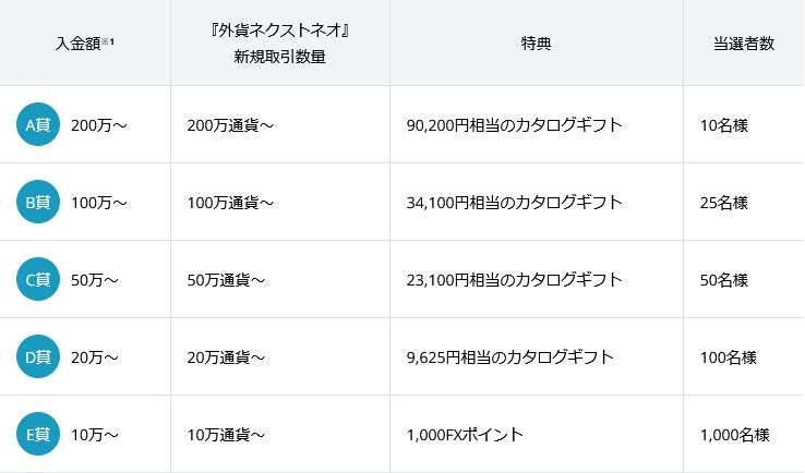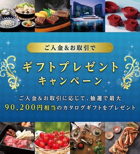『外貨ネクストネオ』口座をお持ちのお客様限定!対象期間中にエントリーのうえ、所定の条件を満たした方の中から抽選で合計1,185名様に最大90,200円相当の高級カタログギフトをプレゼントいたします。