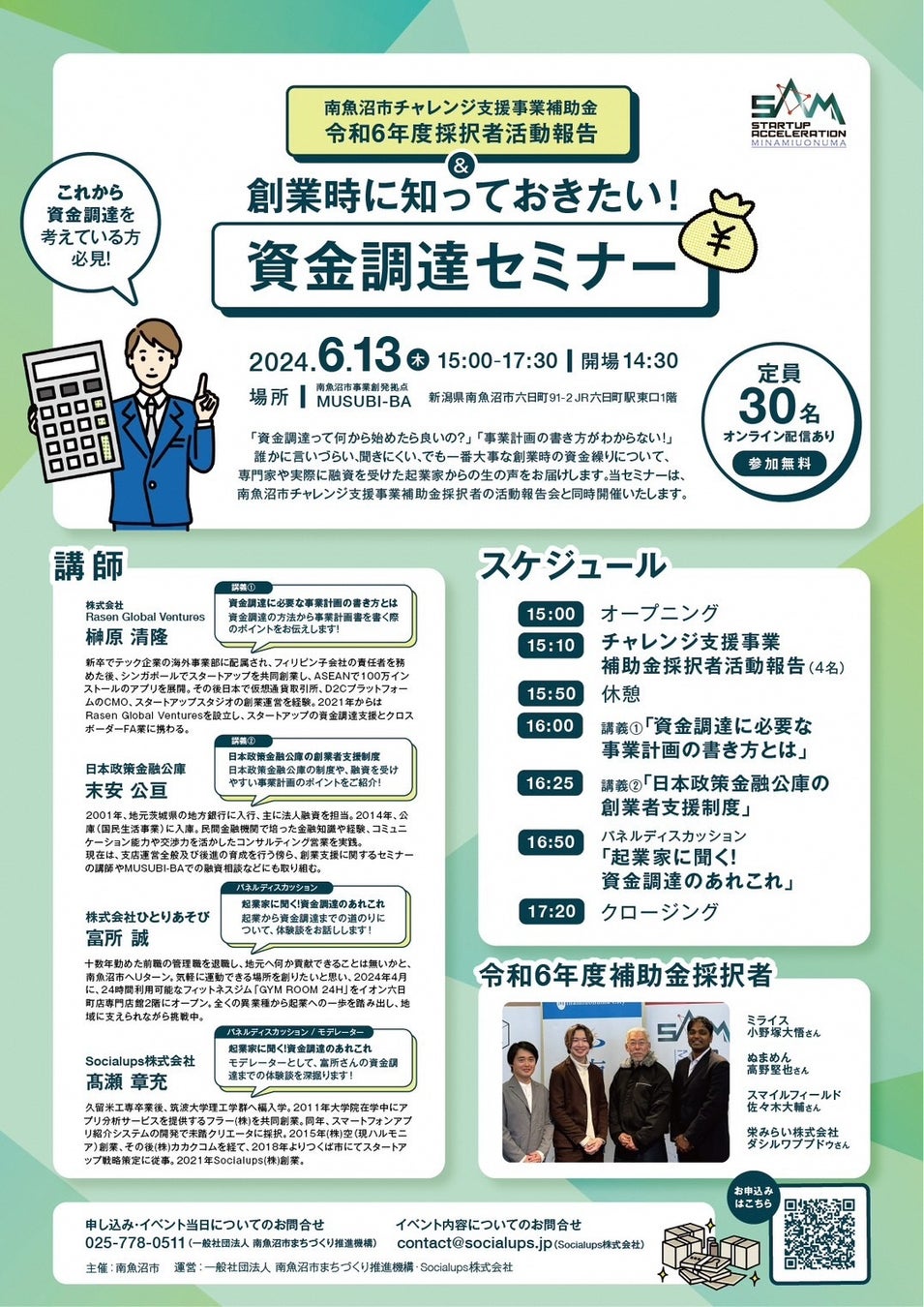 また、同時に「南魚沼市チャレンジ支援事業補助金」採択者の活動報告会も開催いたします!