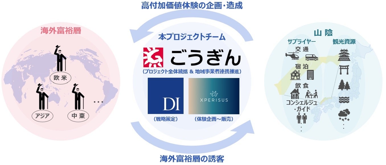 今回は、観光振興による山陰地域全体の更なる経済の活性化を目指し、「インバウンド富裕層旅行者向け高付加価値観光コンテンツの企画および誘客促進プロジェクト」を主導。