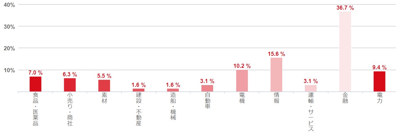 毎月実施している「注目業種は次のうちどれですか?」という質問に対し、「金融」が36.7%と圧倒的に多かった。